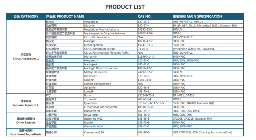 青益纯就产品及市场等方面向新老客户做出了详细的介绍。让感兴趣、有采购需求的潜在客户有了相对更全面深入的了解。在不断变化的国际市场背景之下,青益纯坚持在现有主打产品-枳实系列(橙皮甙、地奥司明、柚皮甙等)、槐米系列产品(芦丁、槲皮素、曲克芦丁等)、绿茶系列(茶多酚等)的基础上加大了对其他植物提取物、氨基酸及衍生物、维生素及API等系列的推广力度。敢于迎接挑战,自主革新,永远将产品质量与客户服务放在第一位,为人类的健康作出我们最大的努力和贡献。