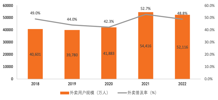 图表 9:中国外卖用户规模及普及率