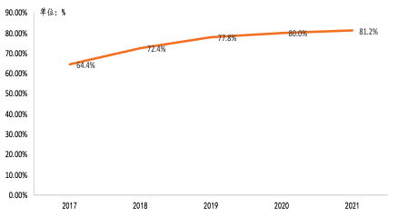 中央厨房是指集中完成食品成品或半成品加工制作的一种企业模式,是预加工食品的制作中心,在预加工食品与原材料之间起到承上启下的作用。餐饮企业成本主要为原材料、人员支出及租金成本,中央厨房的建成可以让处于黄金地段的餐饮门店减少厨房面积,同意集中在中央厨房加工食品,以此减少租金的支出,减低企业的经营成本。根据中国连锁经营协会数据显示,2014年我国限额以上连锁餐饮企业的中央厨房普及率仅为64.4%,而后中央厨房的渗透率逐渐提高,至2021年已达到了。在制作模式上,中央厨房逐渐朝着工业化、自动化的方向发展,利用机器人或自动化设备进行原材料的分拣、清洗及加工,大大提高了预加工食品的制作效率及规模。
