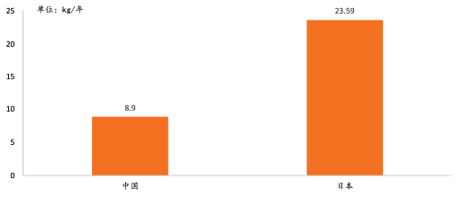 图表 2:2021年中日人均预加工食品消费量对比