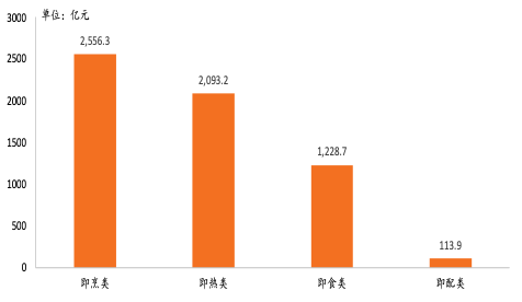 图表 3:2022年各种类预加工食品销售额对比