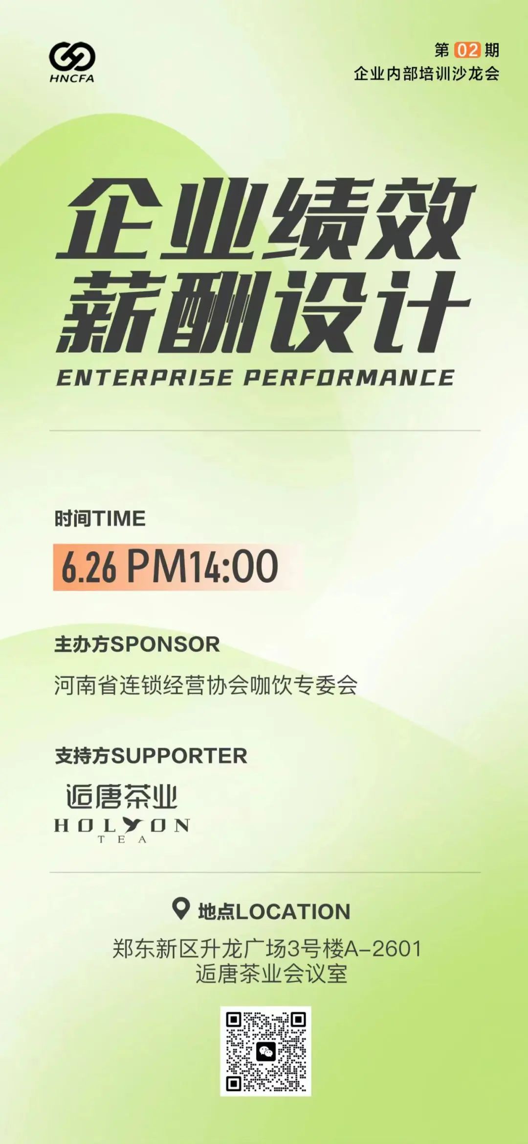河南省连锁经营协会咖啡与茶饮专委会第二期企业内部培训沙龙会即将举行。本期主题企业绩效,薪酬设计。主要解决的问题: 员工工作没有动力 ,老板管理没有抓手 ,薪酬设计和公司目标脱节无法考核的问题。