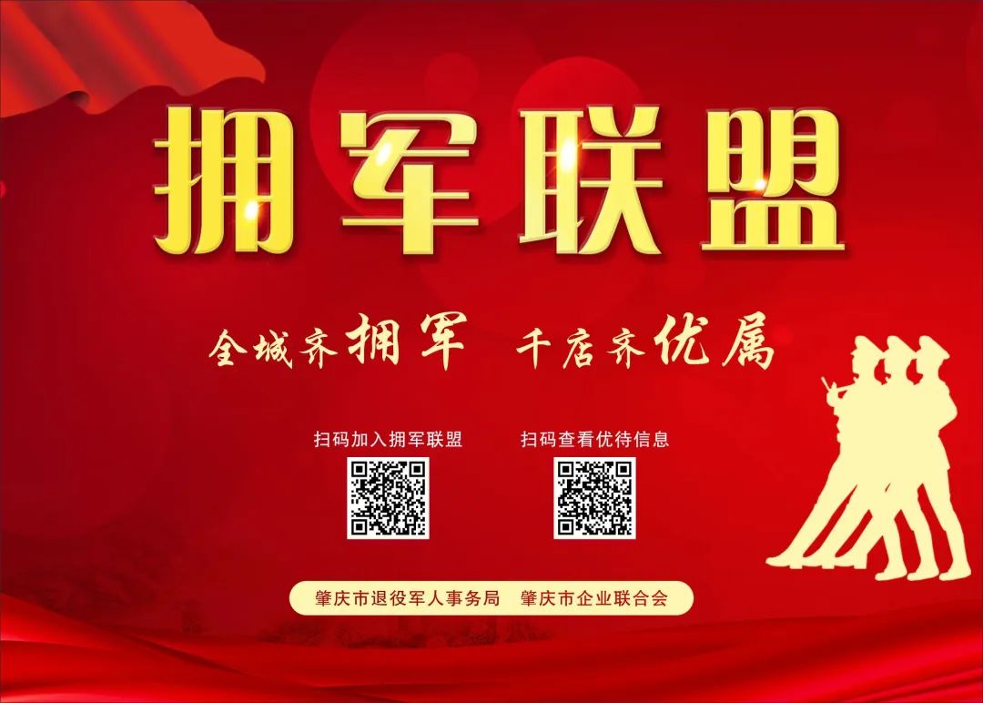 肇庆企业积极加入拥军联盟,为我市广大军人军属、退役军人和其他优抚对象提供最优质和最优惠的服务。