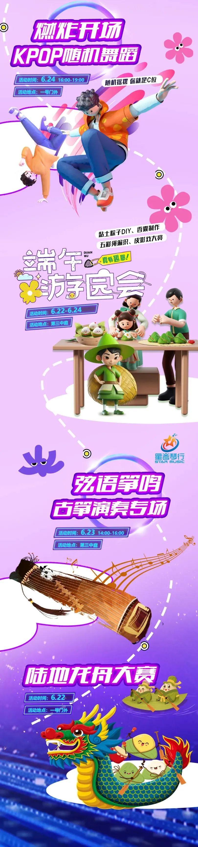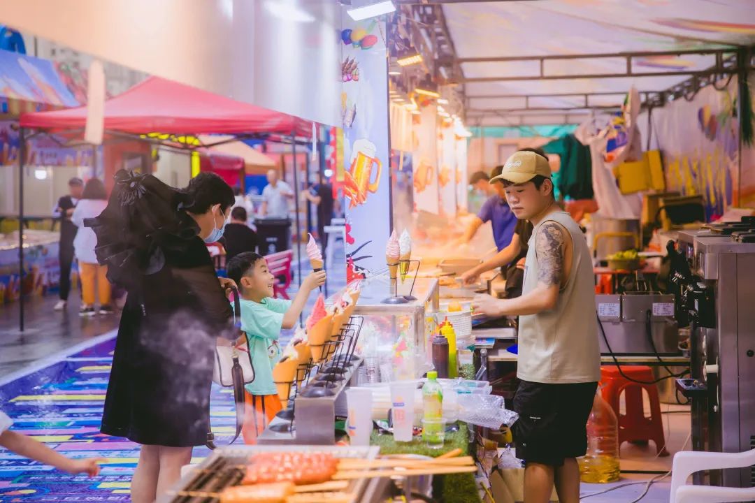 市集划分为美食区、休闲娱乐区、表演区三大互动板块,消费者在美食区可品尝数种特色小吃;在休闲娱乐区可以感受停下来的美好,尽情度过快乐时光;来到表演区,身临其境现场潮玩和DJ音乐中,尽情享受歌舞的乐趣。