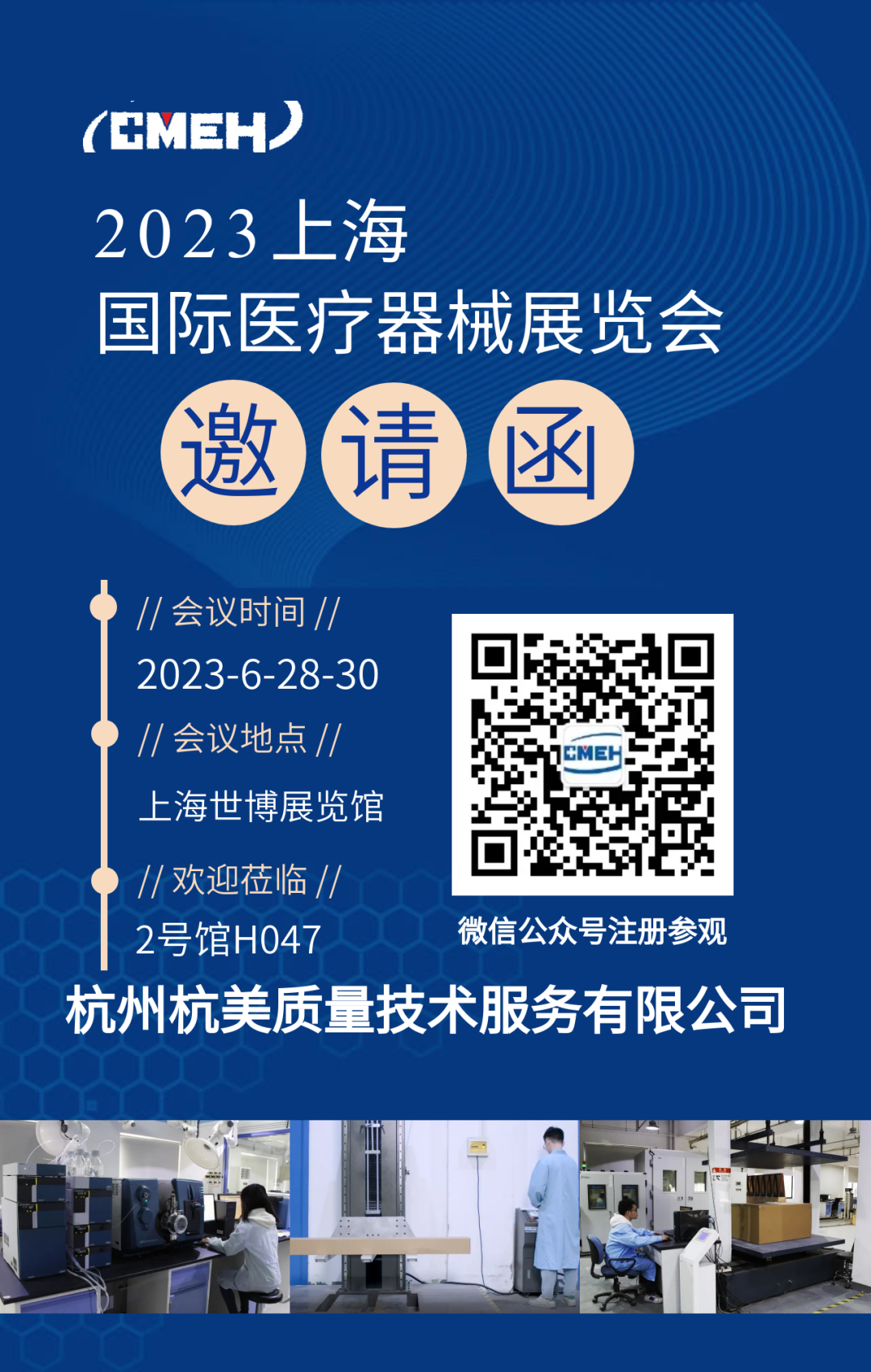 2023上海国际医疗器械展览会(CMEH),将于2023年6月28~30日在上海世博展览馆2号馆举办!届时,杭美检测(HQTS-QAI)会在H047展位等候您的光临,为您提供医疗器械包装运输安全测试方面的咨询服务,为医疗器械行业发展出一份绵薄之力!欢迎各位新老客户前来洽谈!