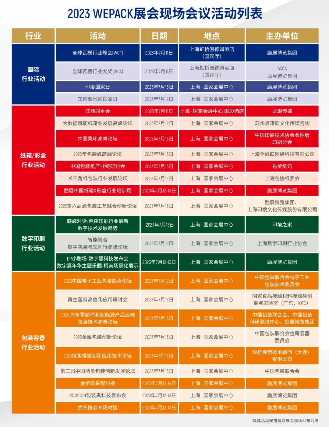 • 同期举办十数场包装行业论坛、会议及奖项赛事;