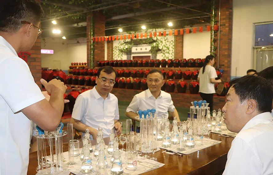 考察中,霍俊波一行还到藏香楼参观了百年木酒海和泥坑原酒陶坛贮存区,并听取了国家级评委、泥坑酒体设计三部部长乔维超对泥坑自调酒体验项目的介绍。