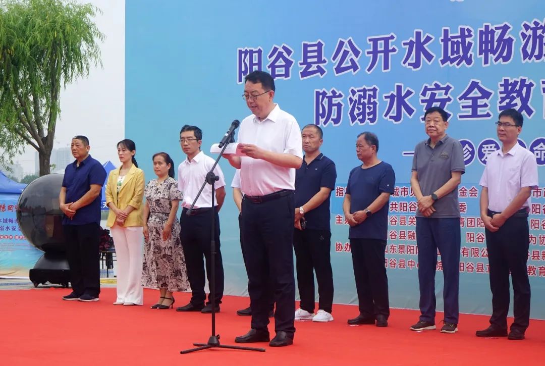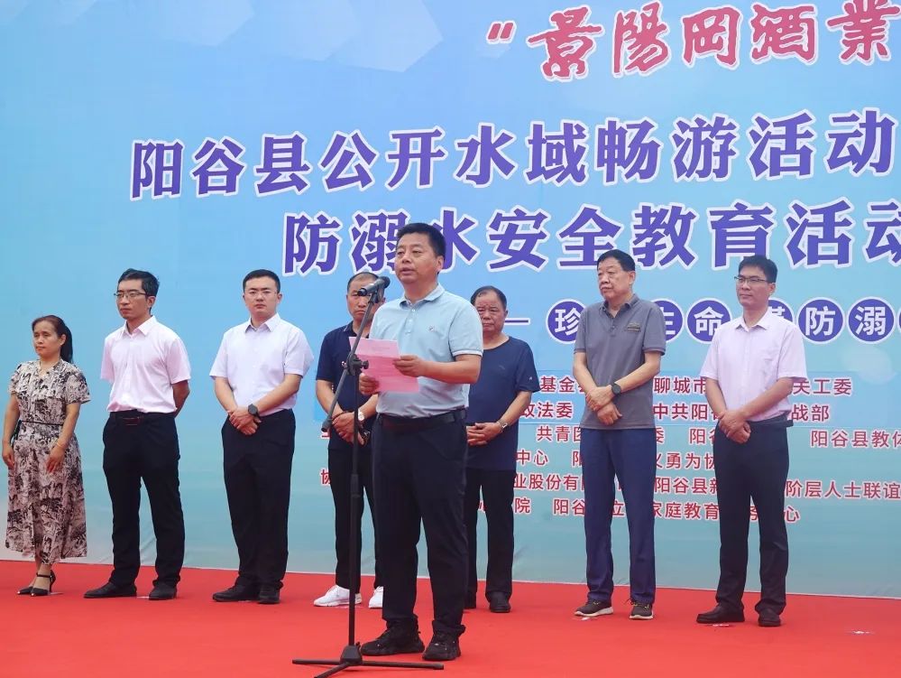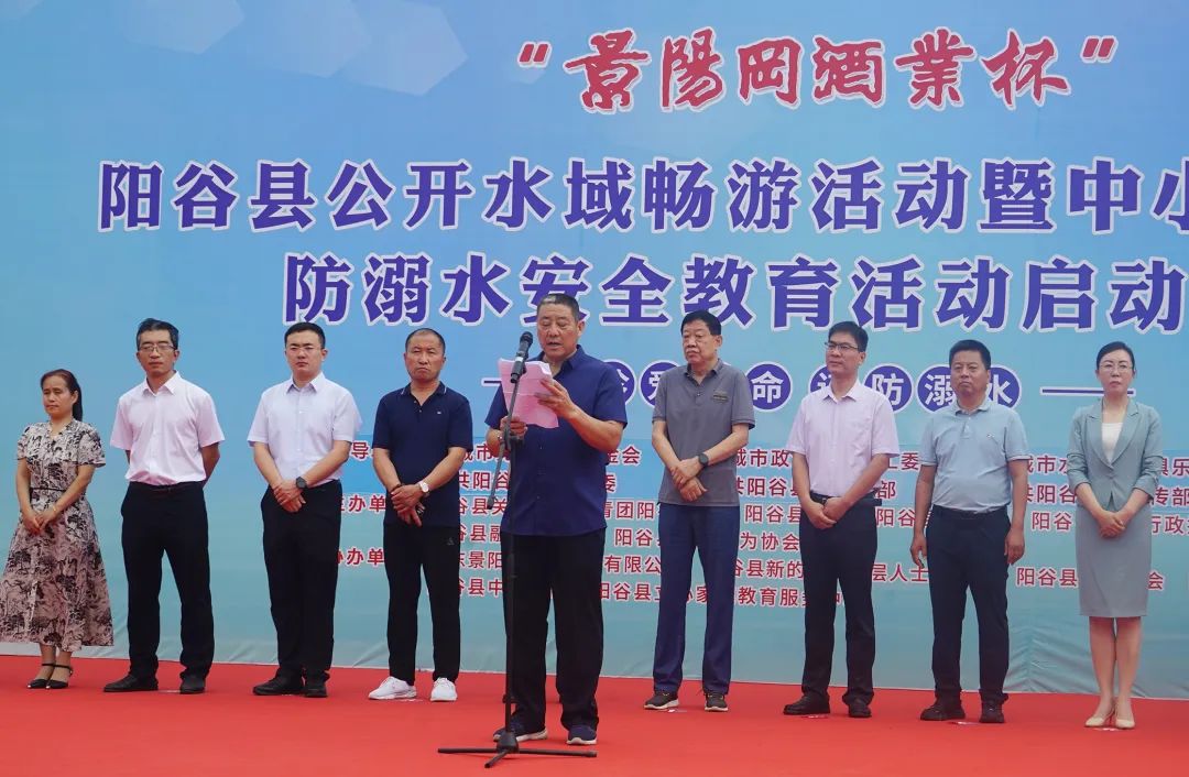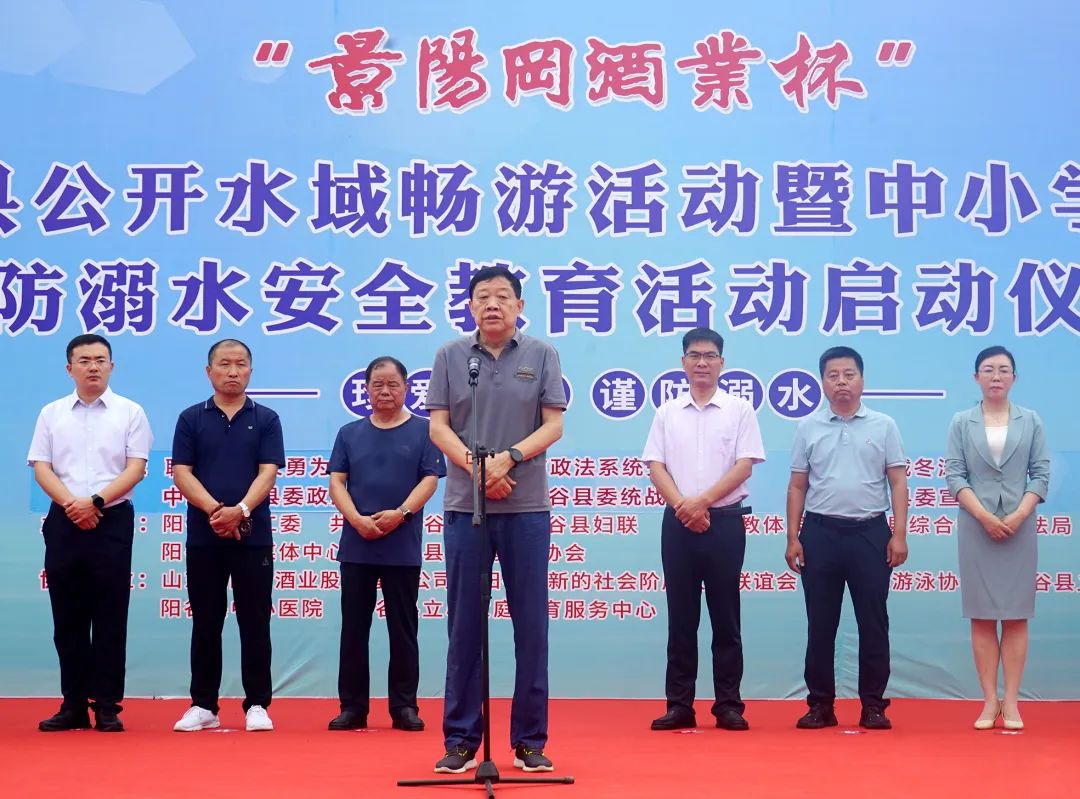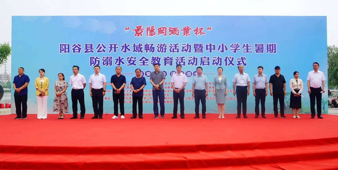 6月20日,“景阳冈酒业杯”阳谷县公开水域畅游活动暨中小学生暑期防溺水安全教育活动启动仪式在阳谷金水湖公园南广场隆重举行。
