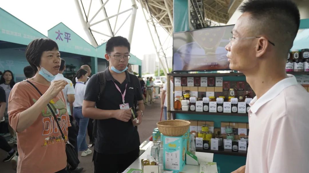 这份“甜蜜”来自一丰牧园蜂蜜。展销会期间,丰牧园展区人头攒动,特色的农产品吸引无数市民前来“打卡”购买。