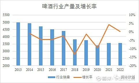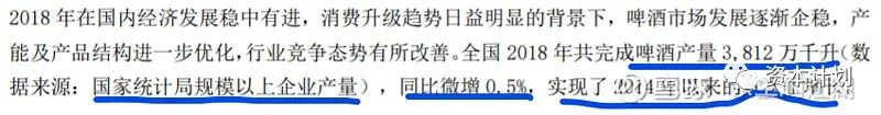 我确认了计算方法,大致是将5家企业财报披露的销量求和,然后除以统计局披露的啤酒行业产量数据。重庆啤酒的财报上采用同样的数据口径,在2022年财报中,管理层披露中国前五大啤酒公司的市场份额超过90%。不过青岛啤酒披露的是:前五大啤酒企业的市场份额约占80%,市场竞争相对稳定。从产量趋势上看到,2018年啤酒产量有超过13%的下滑,从4401下滑到3812万千升,然而当年的统计口径从“行业的产量数据”调整为“规模以上的企业产量统计”。在2018年的年报里,青啤和重啤在行业描述中均有如下一段话: