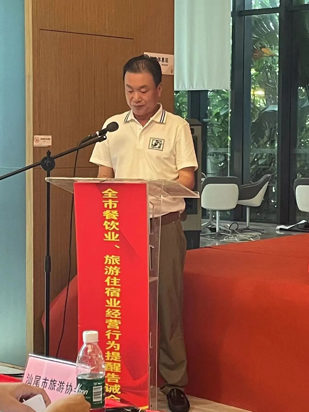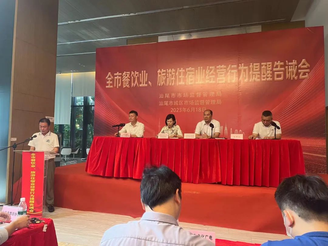 6月18日,汕尾市市场监管局联合市城区市场监管局在保利金町湾召开开全市餐饮业、旅游住宿业经营行为提醒告诫会,汕尾市餐饮行业协会轮值会长赖华受邀出席全市餐饮业、旅游住宿业经营行为提醒告诫会
