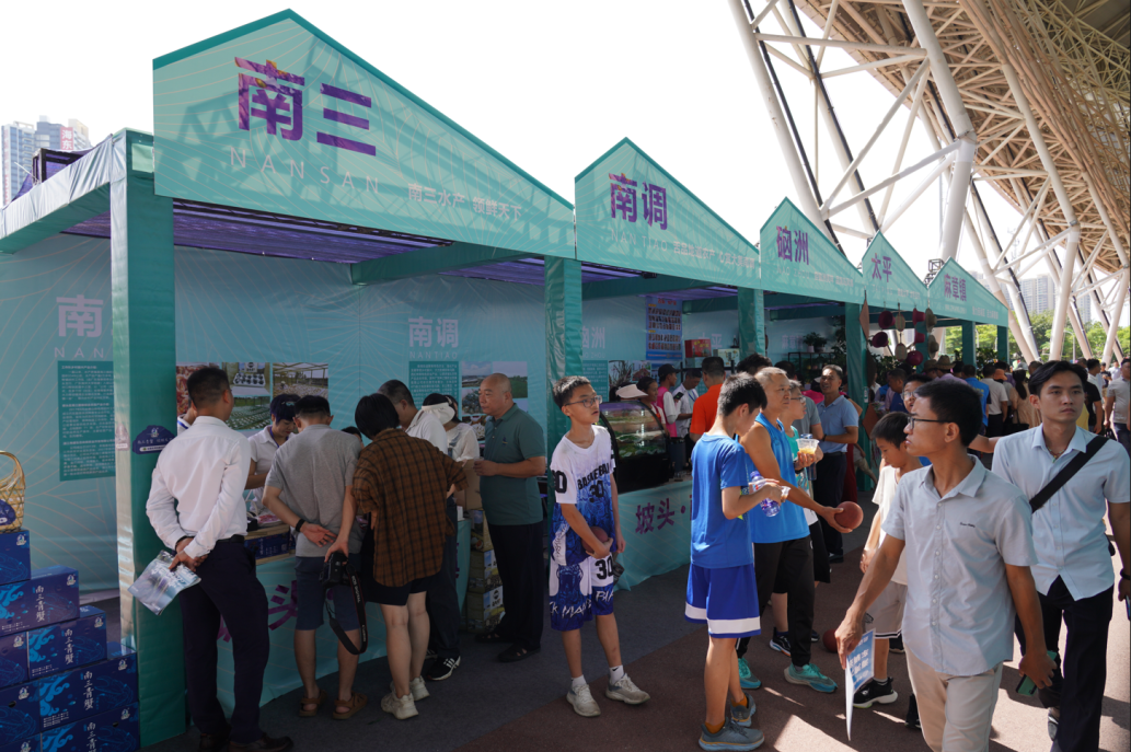 展销会上,坡头区南三镇、官渡镇、乾塘镇、坡头镇、南调街道等镇(街)和部分本土特色企业参展,向展会集中展销青蟹、生蚝、莲藕、珍珠马蹄、青皮冬瓜、荔枝等本地特色农副产品,吸引众多市民前来体验购买。