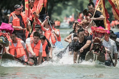 最令人期待的,就属传统的“龙舟胜会”啦!蒋村、五常等周边镇街的约300艘龙舟将齐聚亮相深潭口水域和浜口桥水域,将进行龙舟胜会中难度最高、最具观赏性的“胜漾”环节。