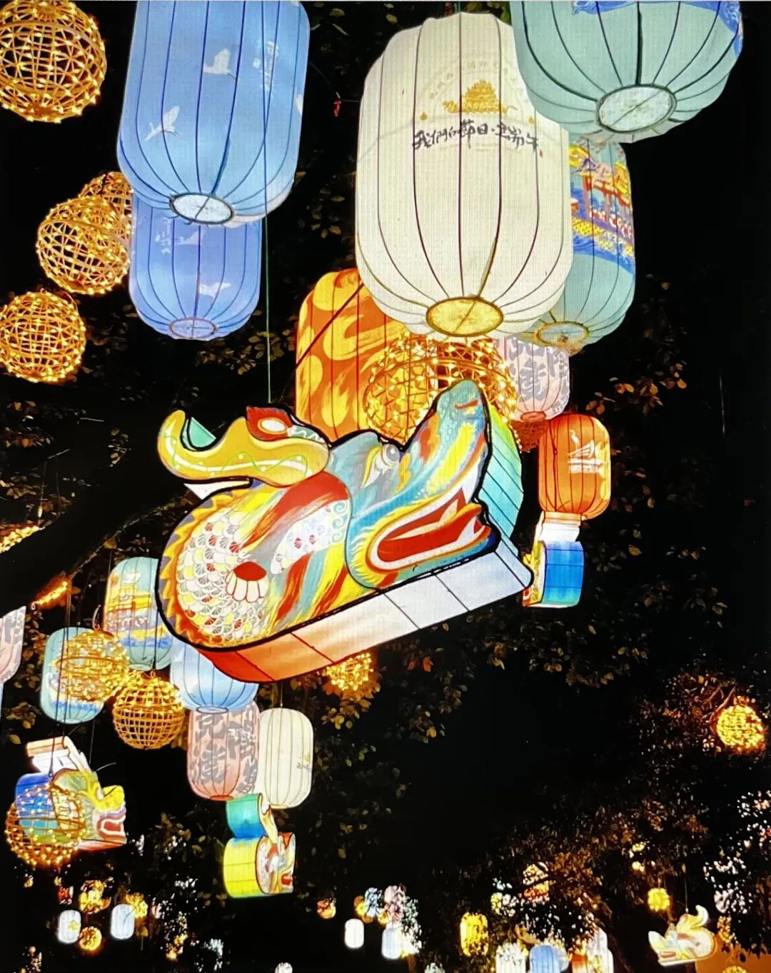 夜幕降临,在西溪慢生活街,一盏盏龙舟花灯烘托着西溪端午的氛围。在湿地北门,更有巨型龙舟花灯闪耀登场,将非遗用花灯的新形式将美传递给大家。