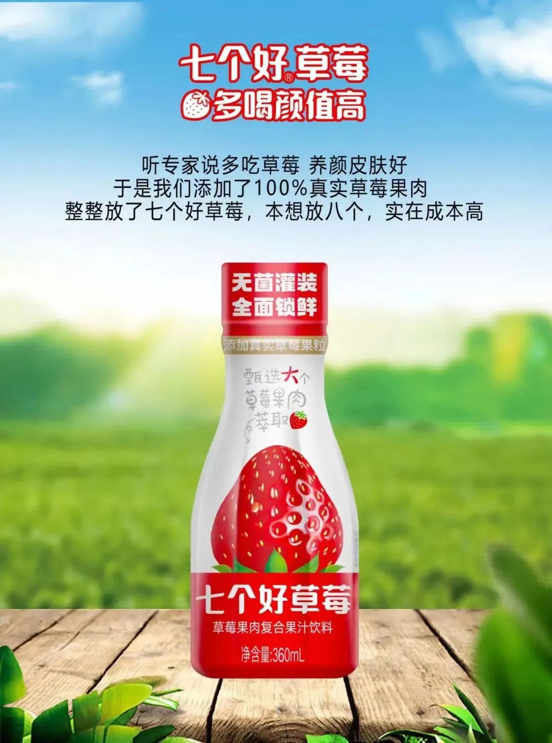 产品介绍:七个好草莓:新品上市,隆重招商25%草莓果肉 60%果汁,无菌冷罐装,创草莓果肉果汁饮料第一品牌。