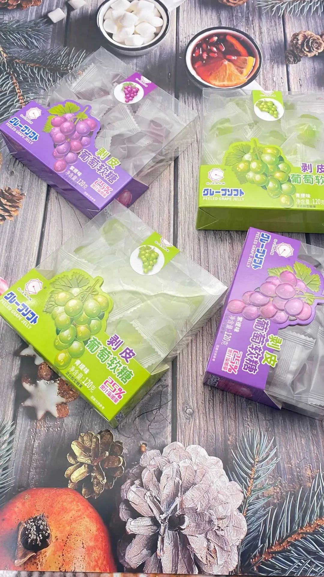 GrEARN提子软糖:还原真实青提或者紫提咬感,皮薄肉嫩,酸甜适中,软糯好嚼