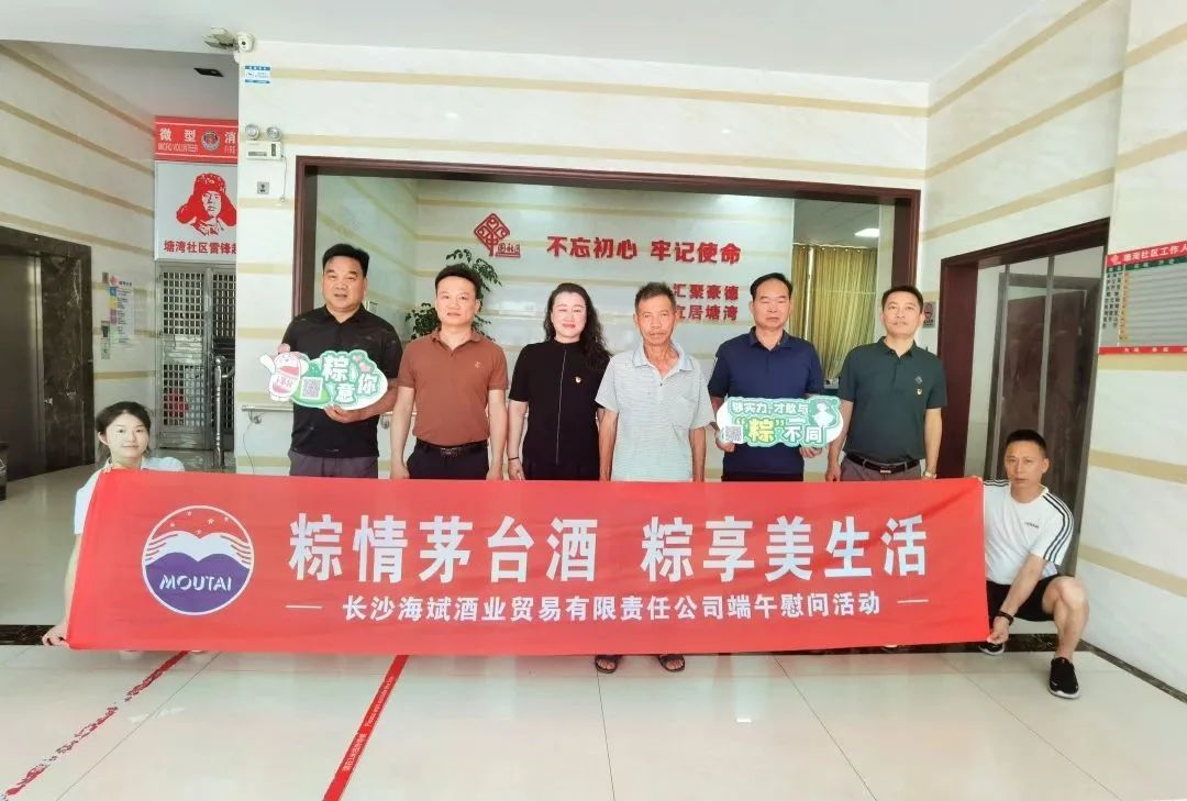 粽情茅台酒,粽享美生活。为弘扬中华民族优秀传统文化和美德,积极践行茅台感恩四老文化。6月21日上午端午节来临之际,长沙海斌酒业贵州茅台专卖店总经理唐群霞率专卖店员工一行来到塘湾社区走访慰问了社区老干部、老党员、老模范、老军人以及茅台的忠实茅粉,为他们送去节日的问候与关怀,传递茅台人的温情与敬意。