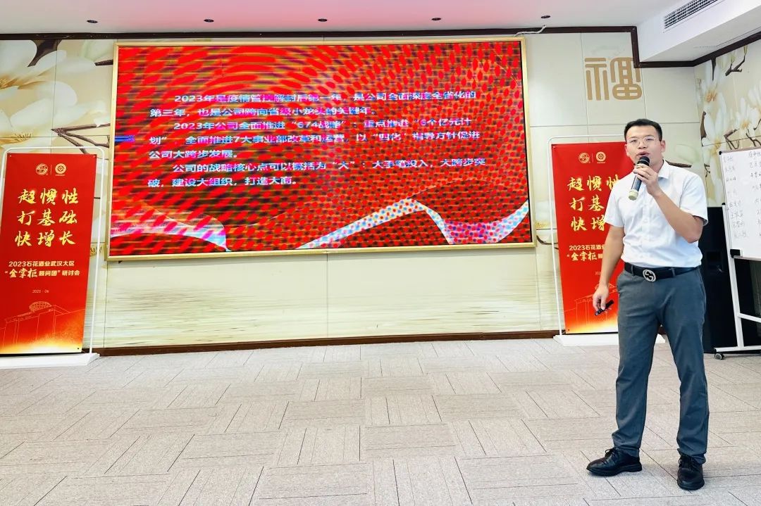 武汉大区江夏办事处经理李志豪为大家解读了石花酒业“金掌柜顾问团”的职责和权益,并介绍了石花酒业武汉大区“金掌柜顾问团”成员。