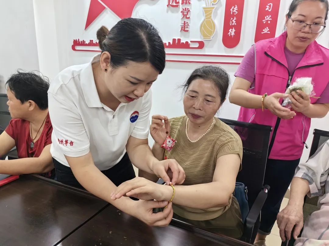 活动开始前公司工作人员进行发言,由衷感谢老年人奋斗一生,对家庭、社区和社会作出的无私奉献,祝愿老人们端午安康,生活愉快。工作人员与老人们一起制作端午香囊,为老人带上五彩绳,节日的“仪式感”让活动充满了温馨和欢乐。