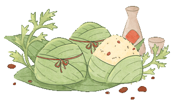 粽,即“粽籺”,俗称粽子,主要材料是糯米、馅料,用箬叶(或柊叶)包裹而成,形状多样,有尖角状、四角状等。粽子由来久远,寓意阖家安康。