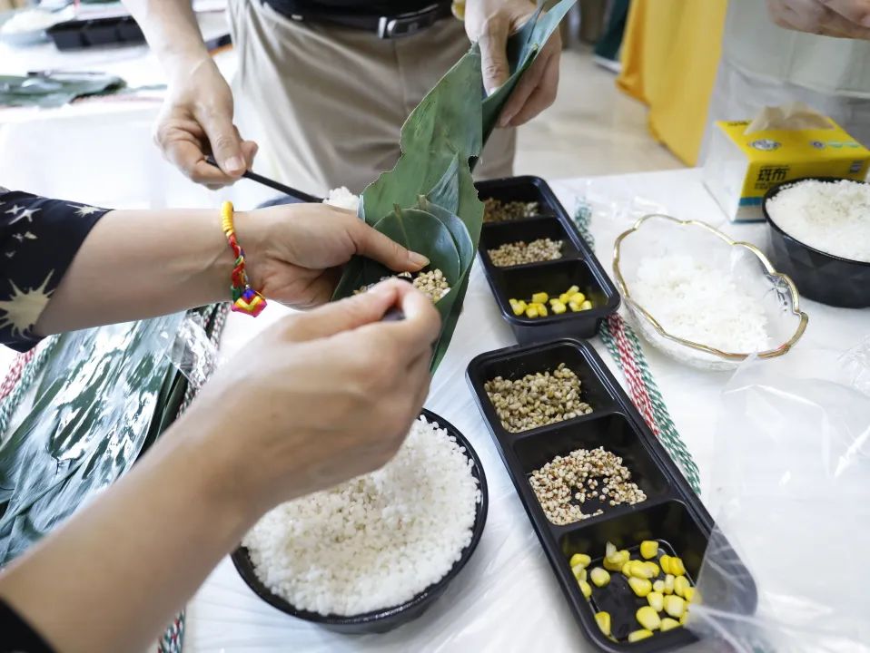 活动最后,我们一同制作端午节的传统美食——粽子。我们将祝福与愿景统统装进碧绿饱满的粽子中,象征着未来的日子也像粽子一样,"粽"是好运,"粽"是成功,"粽"是幸福!