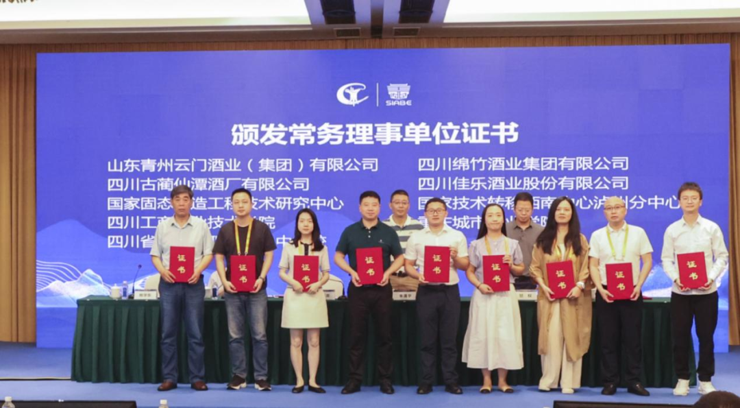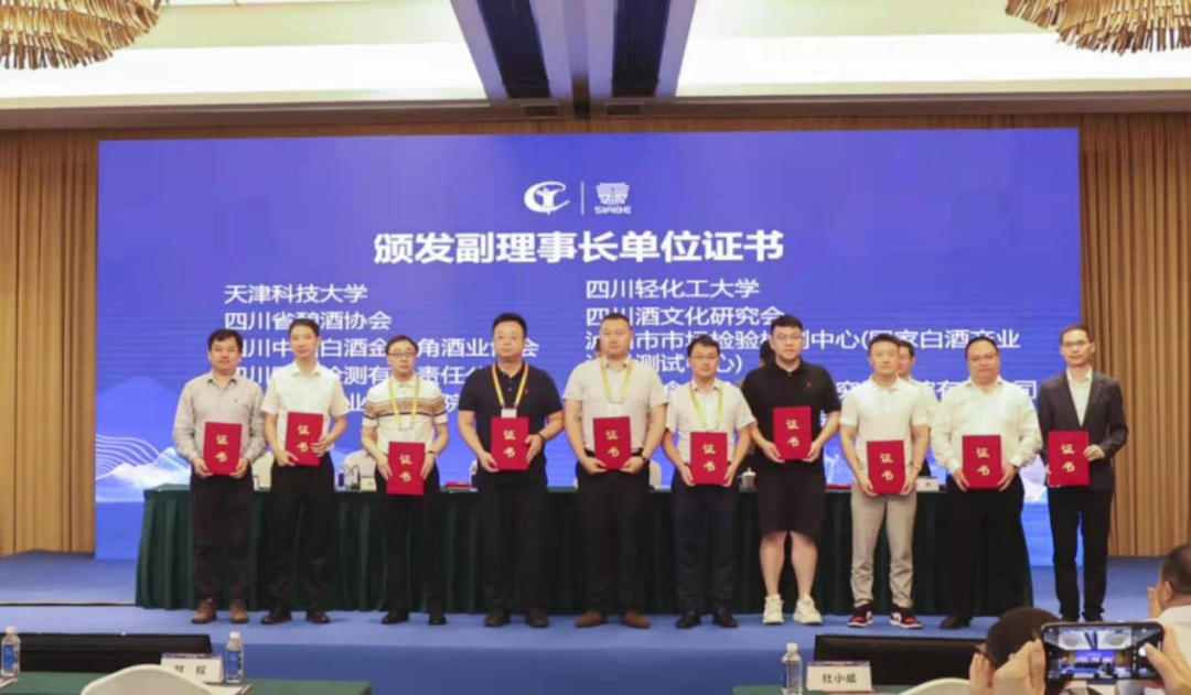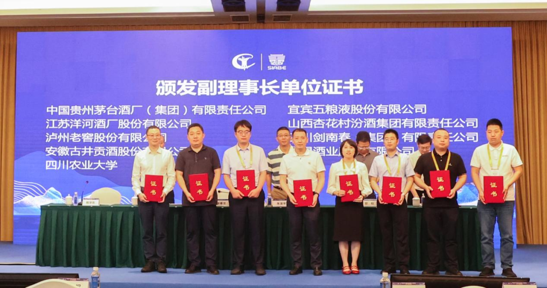 中国贵州茅台酒厂(集团)有限责任公司、宜宾五粮液股份有限公司、江苏洋河酒厂股份有限公司、山西杏花村汾酒集团有限责任公司、泸州老窖股份有限公司、四川剑南春(集团)有限责任公司、安徽古井贡酒股份有限公司、舍得酒业股份有限公司等酒业龙头企业代表,四川农业大学、天津科技大学、四川轻化工大学、四川工商职业技术学院、湖北轻工职业技术学院等国内高校代表,以及行业协会、科研机构代表共100余人参加会议。