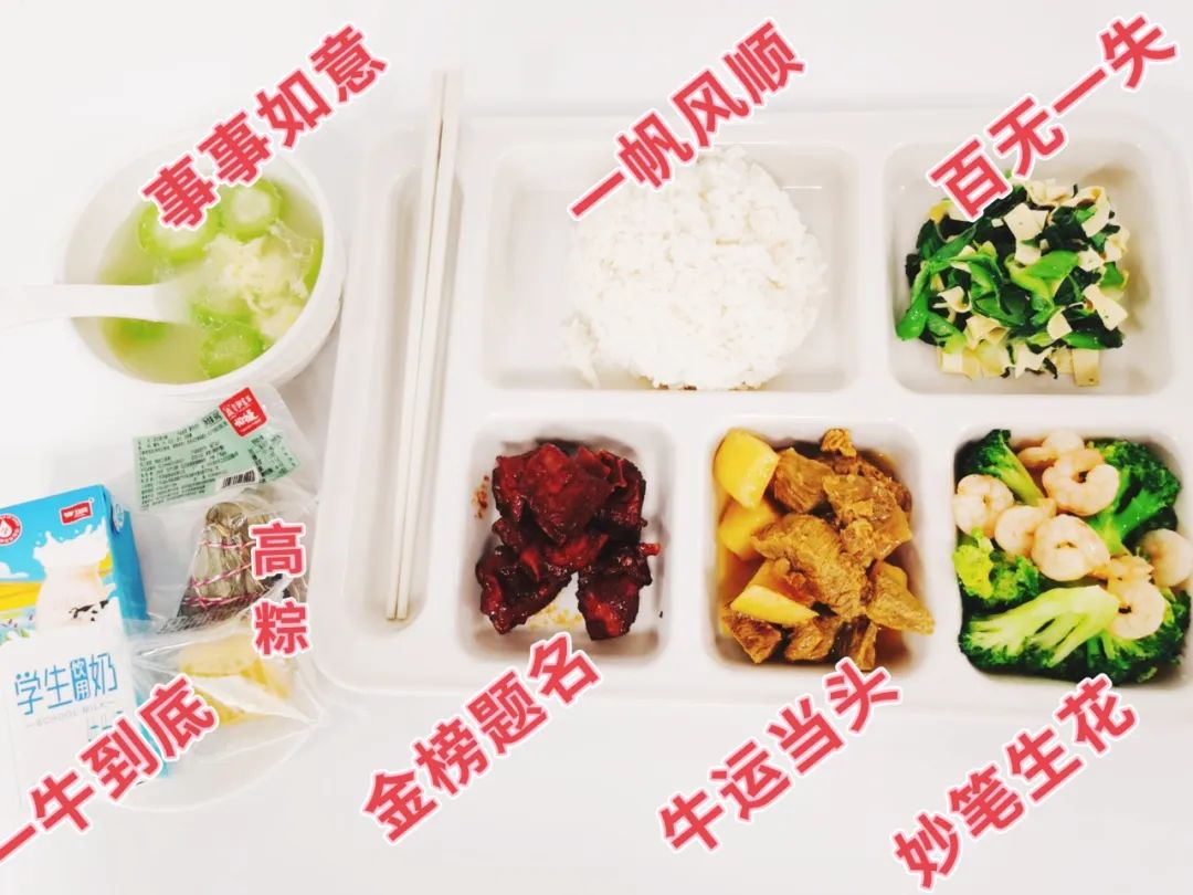 其中高粽礼包(状元糕和粽子)已在中考前一天发放完毕