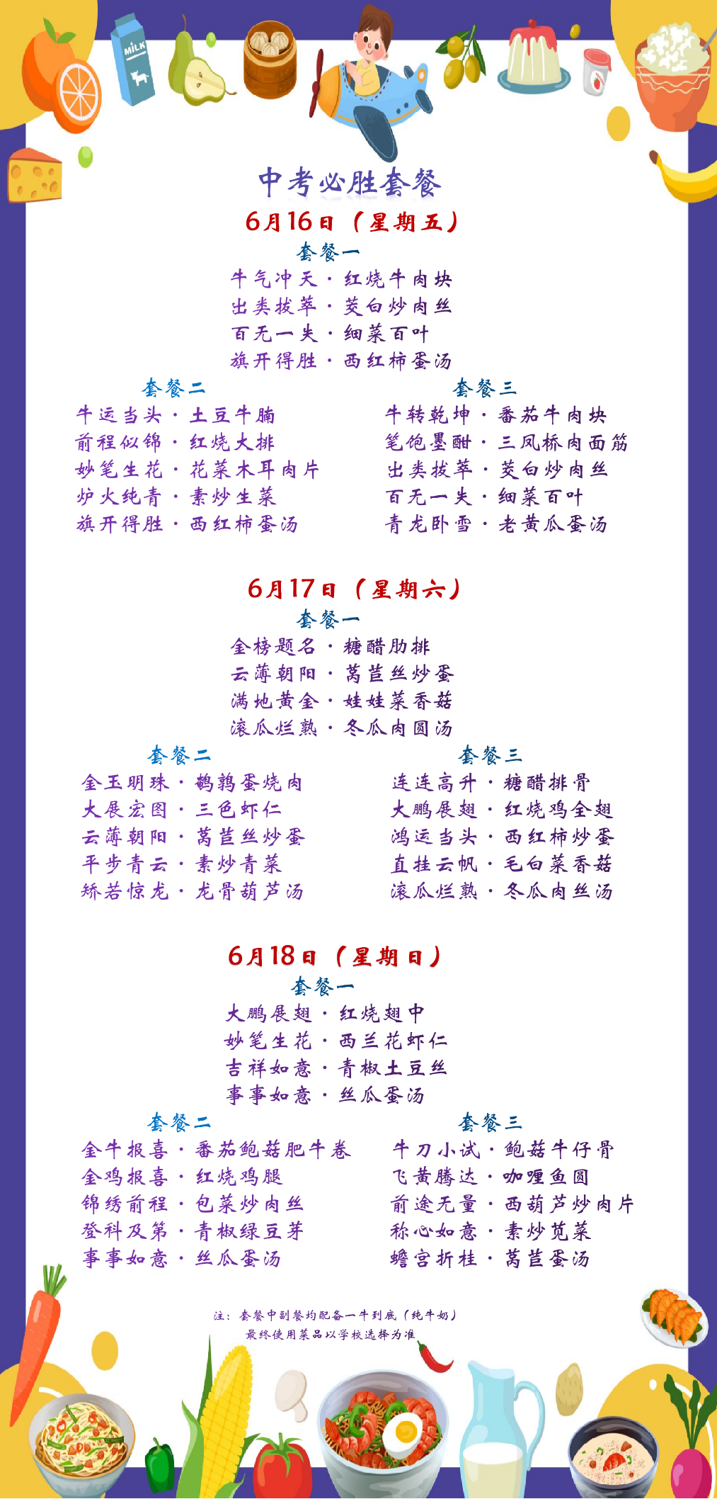 以上为必胜菜品部分展示,最终使用以学校选择为准