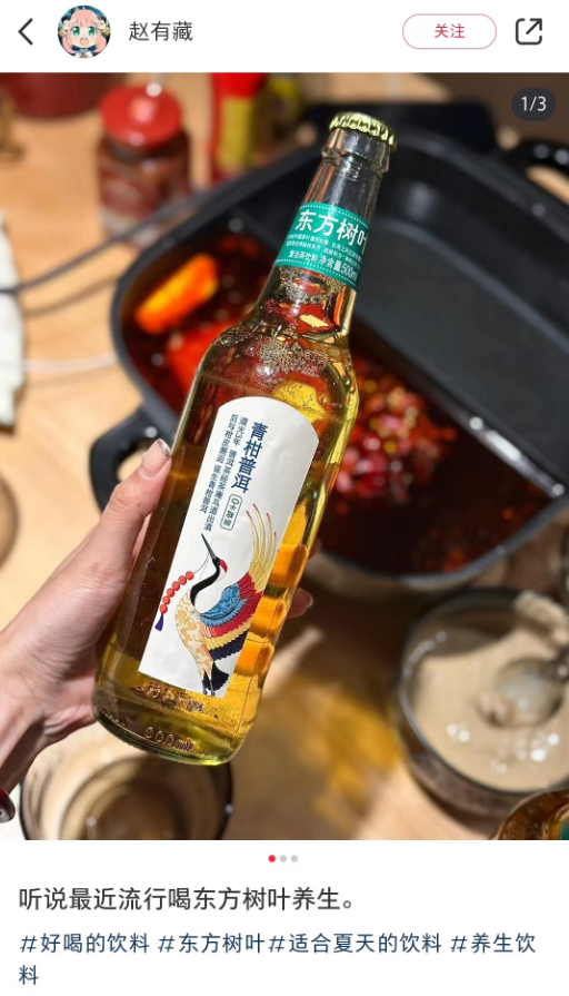 在网友的发挥中,东让树叶的瓶身是美不胜收。品牌和产品的国风韵味更浓,形象气质飙升。
