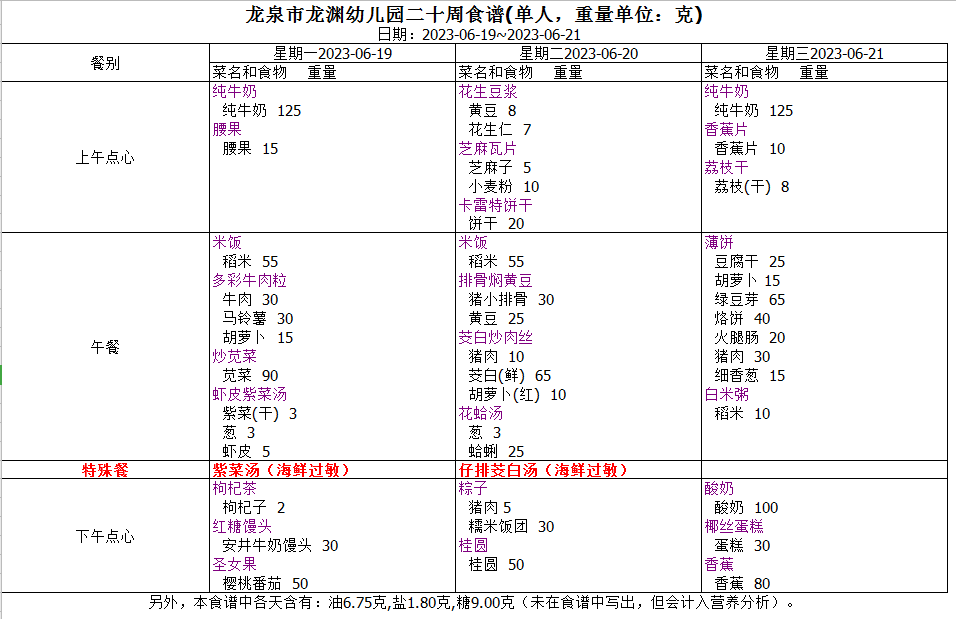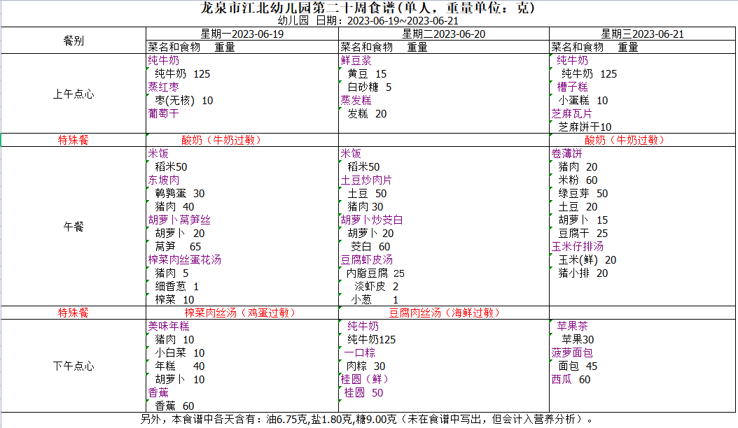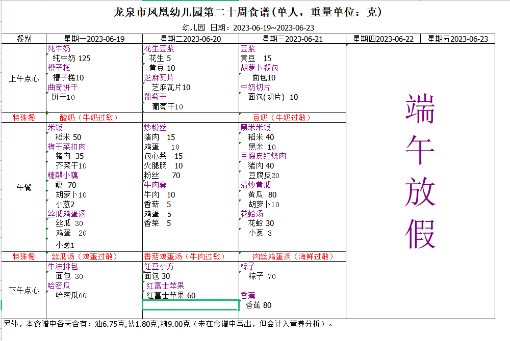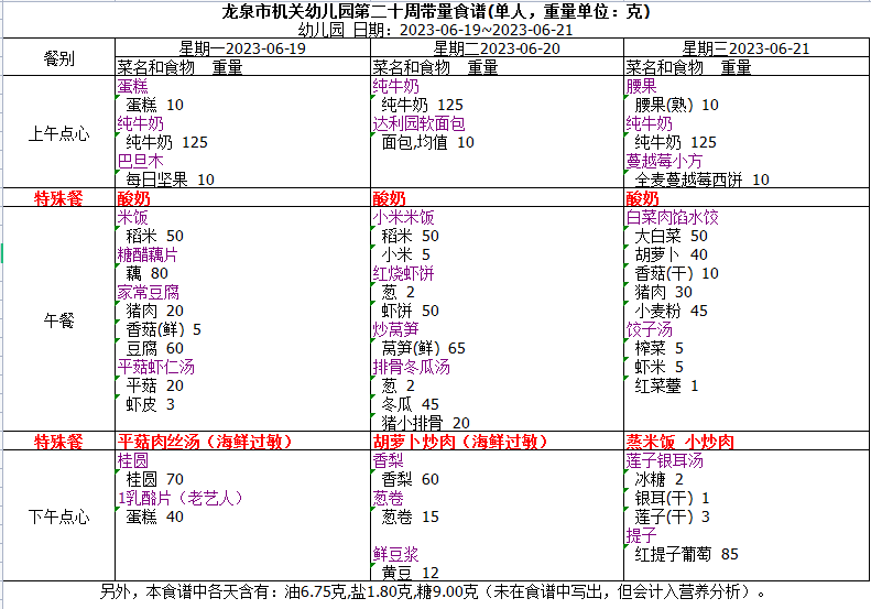 【机幼“食”光】龙机幼教育集团2023年6月第二十周食谱