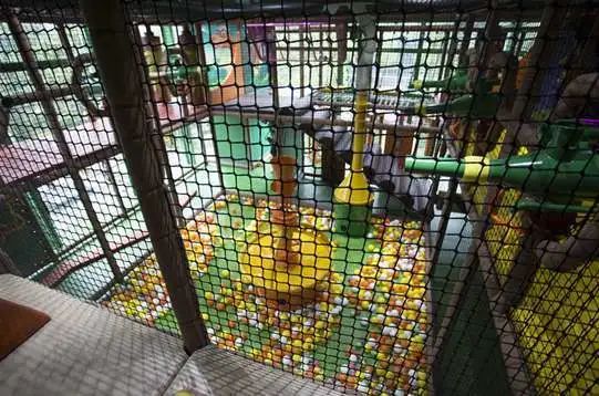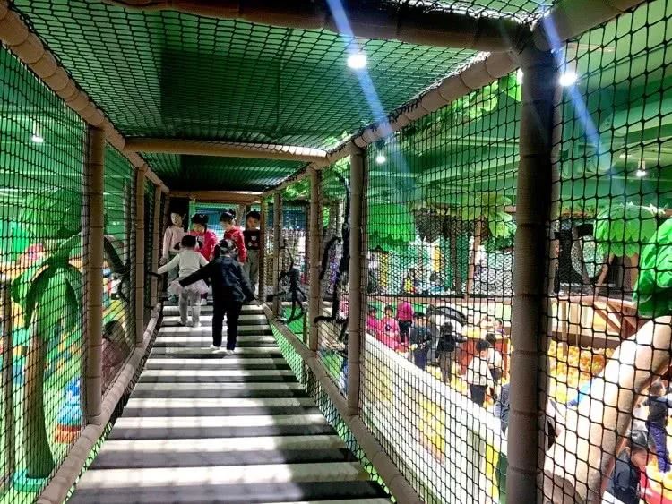 淘气堡:海洋球池、网桥、栈道、逃离火山、大滑梯、恐龙乐园。
