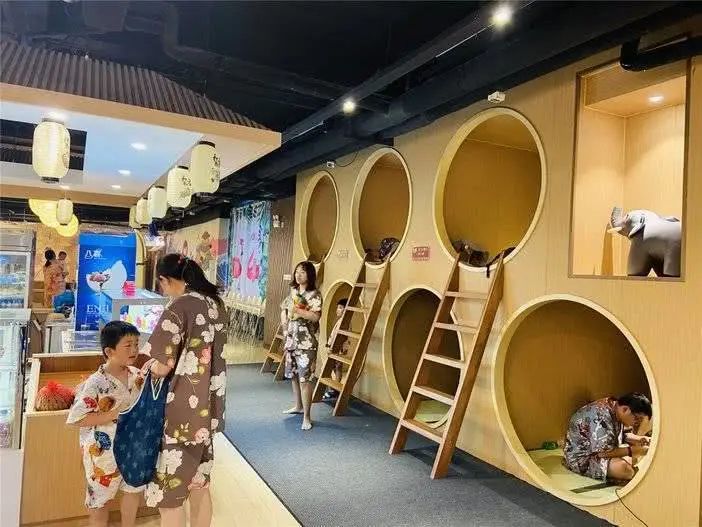 休闲区:和服租赁区、电影放映区、网红照相打卡、休息区、按摩区、休闲客房。