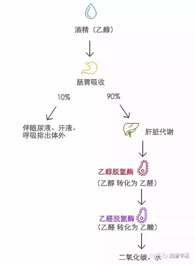 1、酒精上头:人饮酒后,由于人体差异,进入人体的酒精约10%不发生任何变化经由呼吸道、尿液和汗液直接排出体外,其余经肝脏代谢,最终氧化分解成水和二氧化碳。酒量小的人,体内缺乏乙醇脱氢酶和乙醛脱氢酶,不能使酒精快速转化成水和二氧化碳。这样乙醇就会随血液循环,造成心律失常、血压升高、脑部充血,出现头晕头痛的现象。