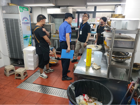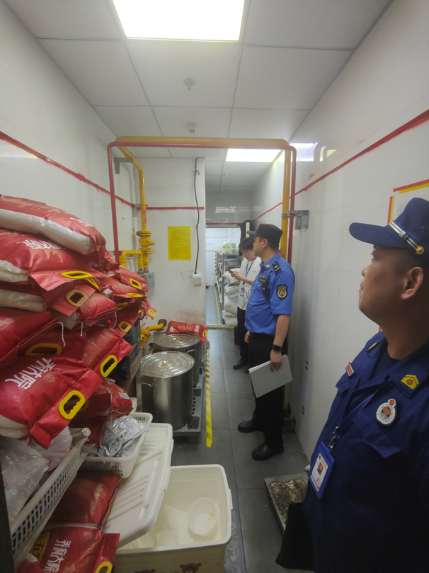 开发区机动中队值班队员对辖区内九龙街区美食街、硅谷小镇景区40余家餐饮店开展检查,消除安全隐患10余处。