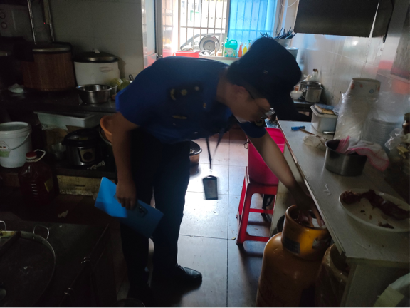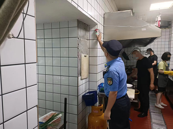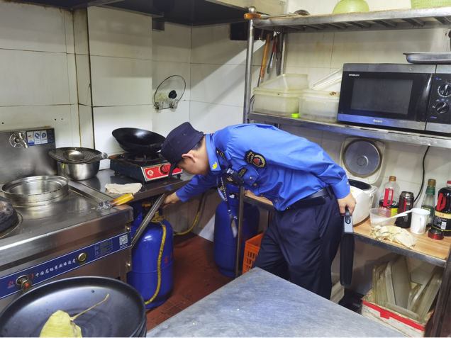 走进沿街餐饮店铺,对是否存在油气混用、超量储存、用气区域未通风等安全隐患进行全面排查,截至目前共检查店铺36家,发现并落实整改安全隐患问题13个。
