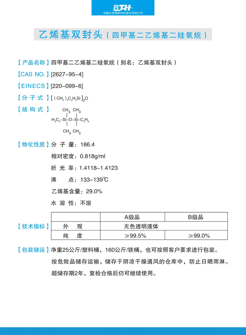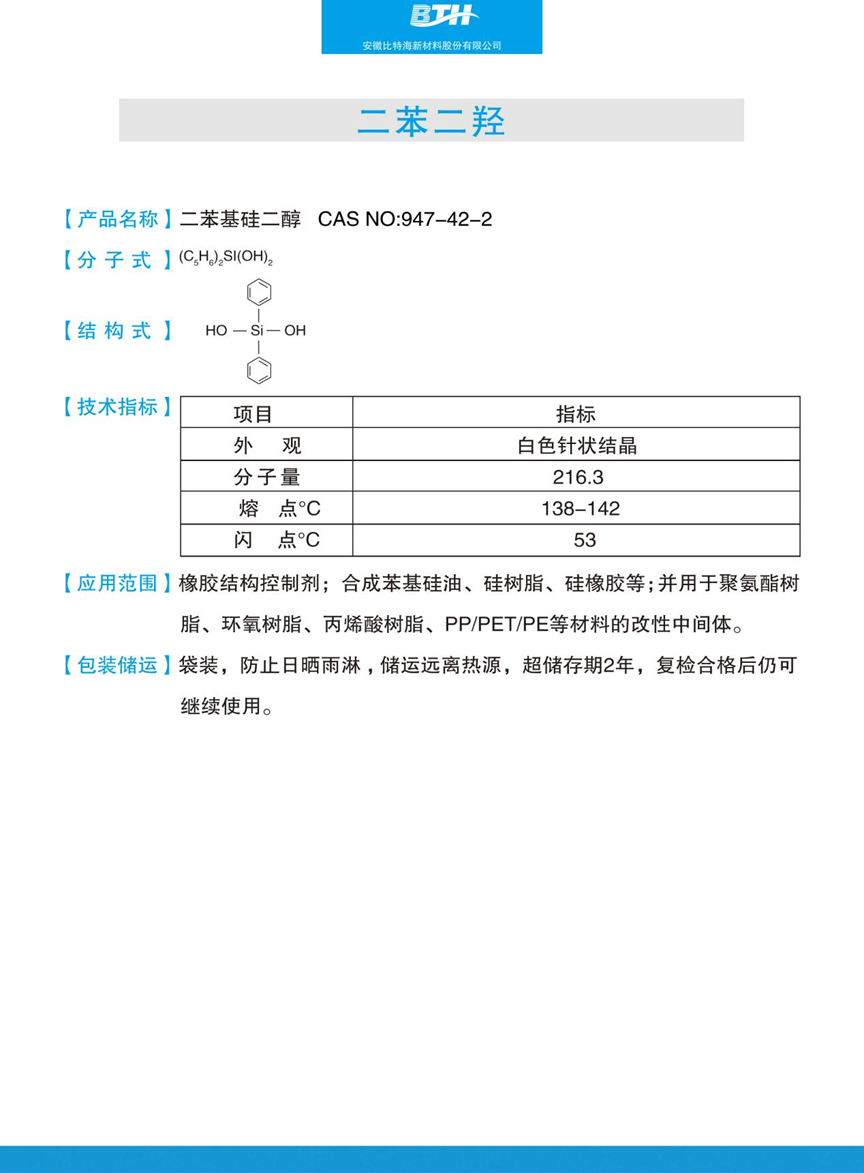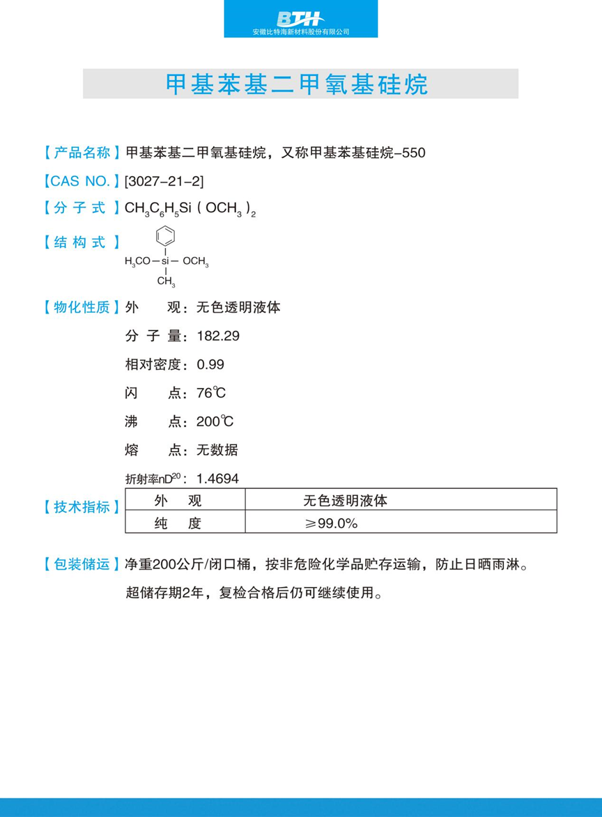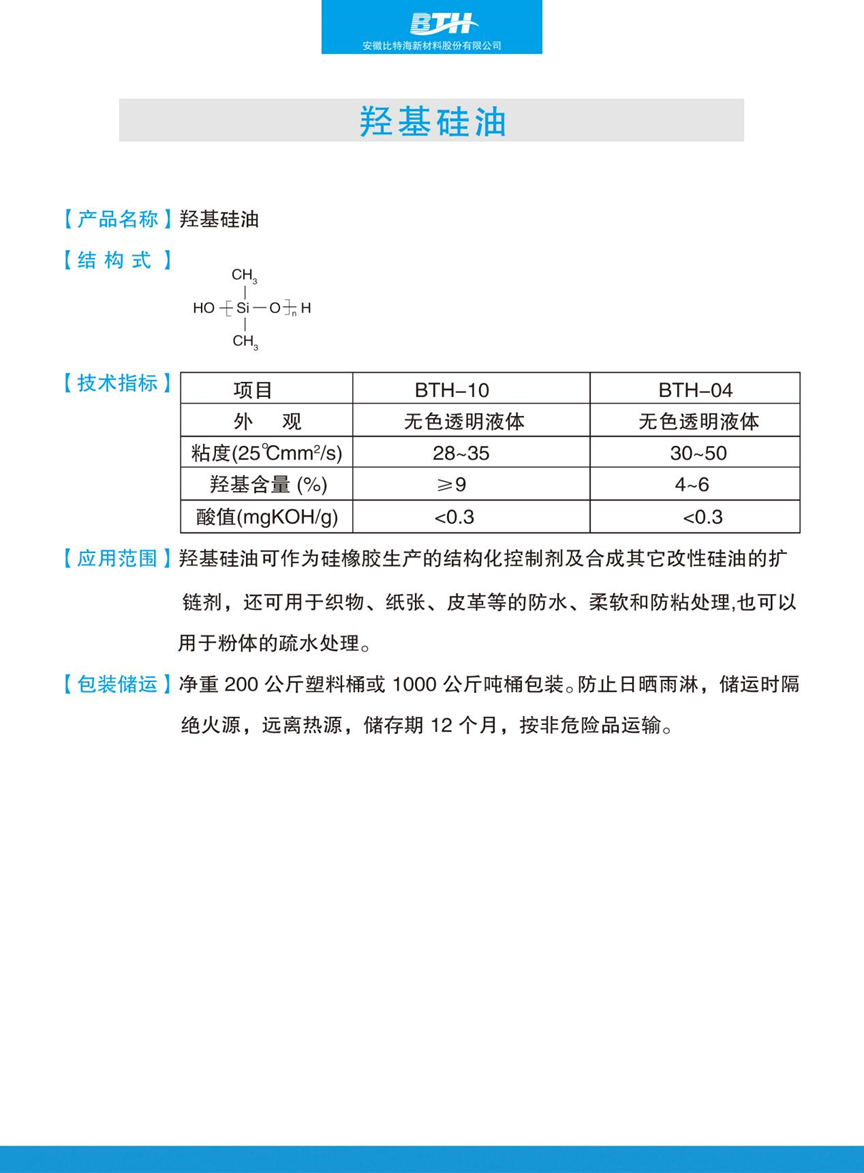 安徽比特海新材料股份有限公司是一家集新产品研发、有机硅产品生产、销售为一体的精细化工新材料公司。公司在有机硅产品领域深耕20多年拥有强大的科研团队、标准化的中试基地及务实的安全生产管理团队。近年来在生产技术及安全生产管理方面获得了4个发明专利,13个实用新型专利,三个软件著作权,2021年取得了9001质量管理体系认证,是国家高新技术企业。公司科研团队在2018年受相关单位的委托研发出军用特种苯基硅油,该产品成功替代了国外进口打破了该军需产品长期依赖进口的局面。2019年公司在阜阳市颍上县循环经济园化工集中区投资新建了一个苯基氩硅烷有机硅系列产品项目,总占地126亩,总投资3.5亿元。公司现有的主要生产产品有:乙烯基双封头;硅橡胶专用出油剂;羟基硅油;二苯基二甲氧基硅烷;二苯二羟;甲基苯基硅油-550;苯甲基硅油-255;苯甲基硅油-556;苯甲基硅油250-30;真空扩散泵油-274、275;苯甲基硅油封头剂-苯基转化料;一苯基三氯硅烷;二苯基二氯硅烷;甲基硅油及乳液等有机硅系列品。 公司一直秉承科技创新战略,坚持‘开拓创新、科技立企’的发展理念,以‘为客户创造价值、为企业员工创造未来’为使命。严格遵循‘质量第一、信誉至上’的经营方针,为用户提供优质产品和一流服务。竭诚欢迎新老客户前来洽谈业务并建立合作伙伴。