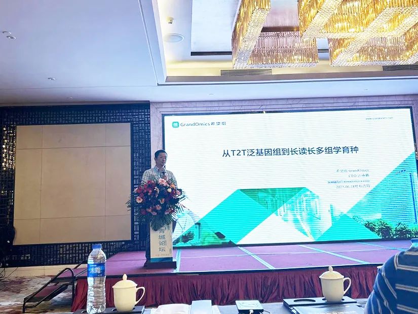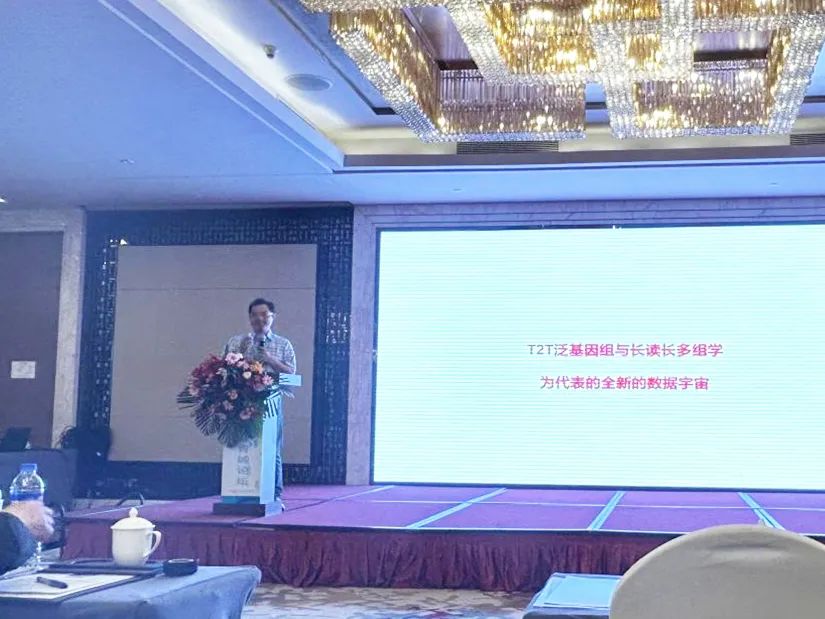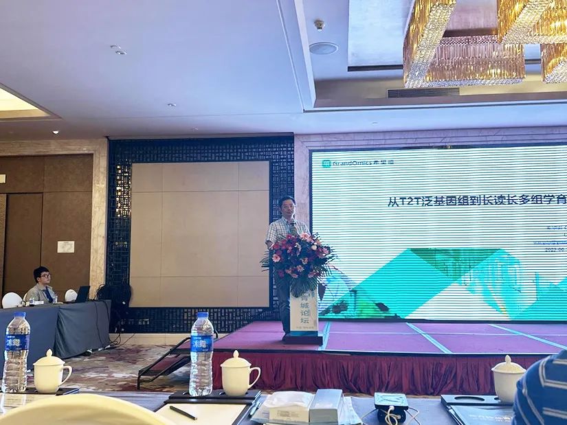 希望组作为长分子大数据价值挖掘者,引领长读长测序行业的发展,积累了丰富的项目经验和成果,其中一些相关成果发表在Cell、Nature、Nature Genetics等杂志上,吸引了不少老师同学,他们纷纷停留在希望组展台前学习交流,深入了解希望组,探讨遇到的问题,通过学习交流共同进步,为我国的畜牧发展贡献力量。希望组CEO汪德鹏在大会报告中为大家精彩讲解“从T2T泛基因组到长读长多组学育种”,不少老师表示认可与赞同,并互相交流技术的应用和未来的发展前景!希望组CEO汪德鹏先生报告演讲