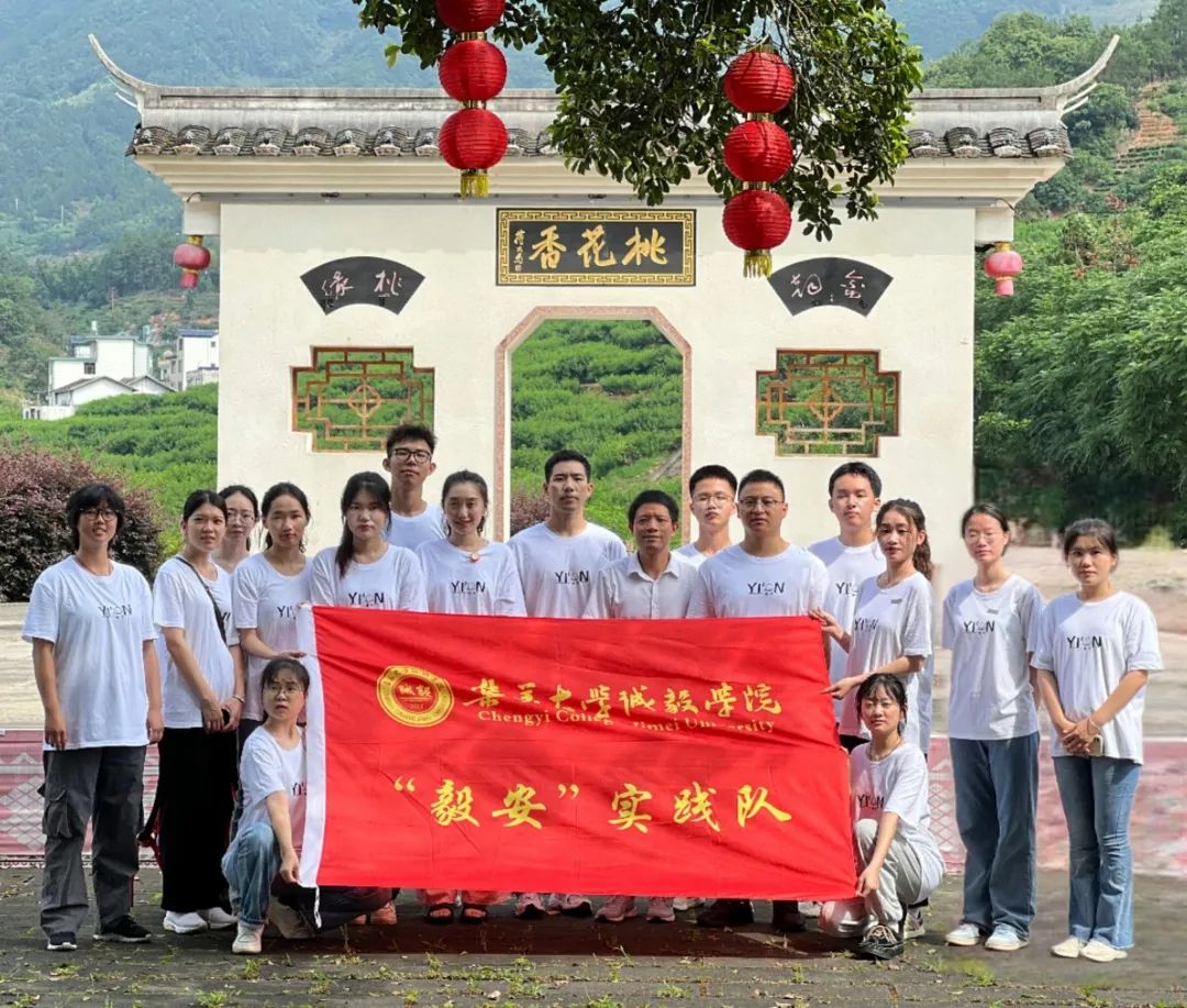 随后,实践队来到穆云畲族乡东部秀溪畔,踏过穆阳溪和红壤土来到穆阳水蜜桃的主产地。穿过千亩桃林,听畲歌摘蜜桃,桥下溪水潺潺,桥上紫藤漫布。走上虎头桥,徐徐清风诉说着畲乡十里绵延的蜜桃清香。实践队了解到穆阳镇建立了“一桃一码”质量追溯体系,打造穆阳水蜜桃追溯安全产业链模式。在品牌之路上,穆阳水蜜桃高产量和高品质齐头并进。