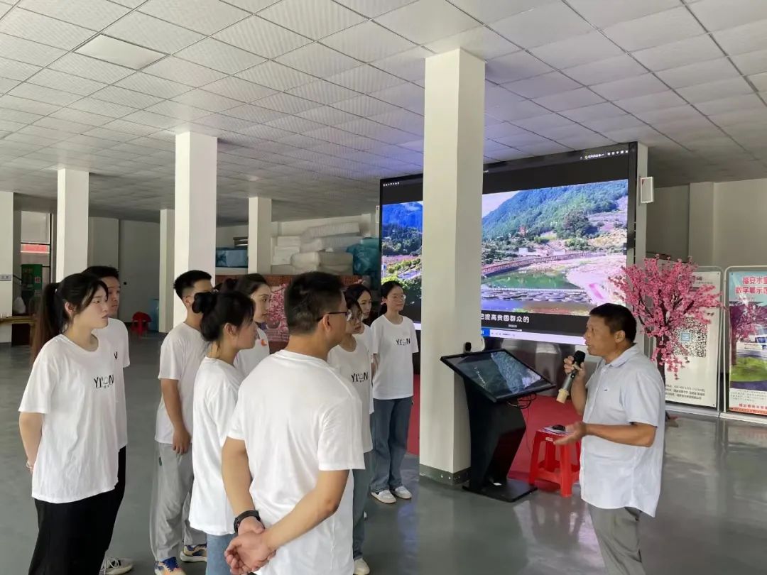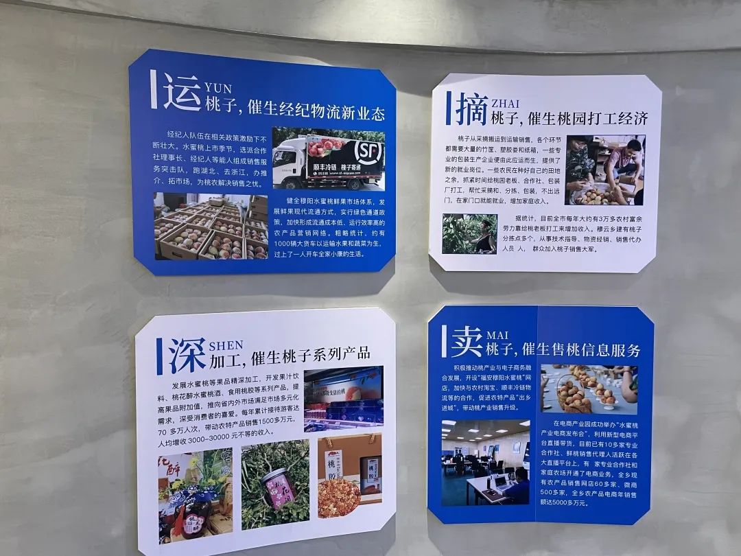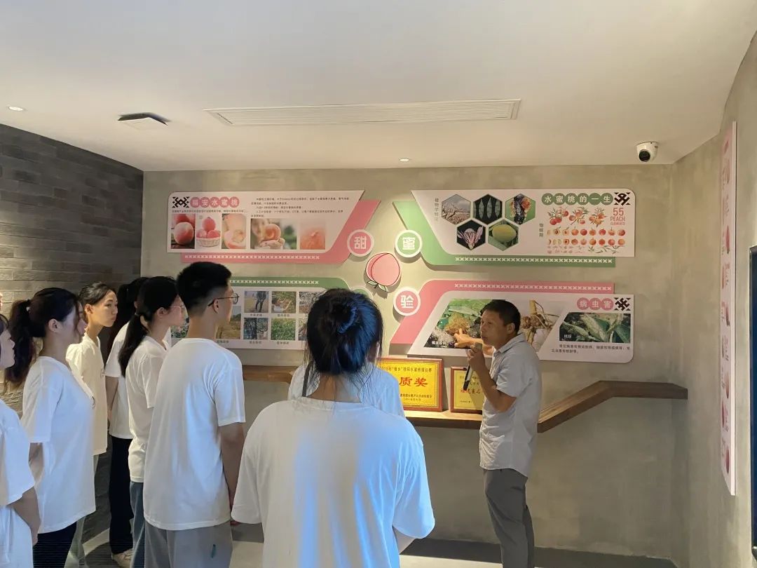 实践队来到穆云畲族乡素有“天下第一桃”美称的虎头村进行学习调研。水蜜桃产业中心的数字展示馆,正在用声、光、电和多媒体形式展示穆阳水蜜桃的历史、产业发展情况、效益等,让水蜜桃不仅是一颗颗“甜蜜”的果,还是“有故事”的果。跟随吴树灿书记的介绍,实践队来到水蜜桃电商服务中心,感受互联网+新模式赋能销售产业链的纵横发展。