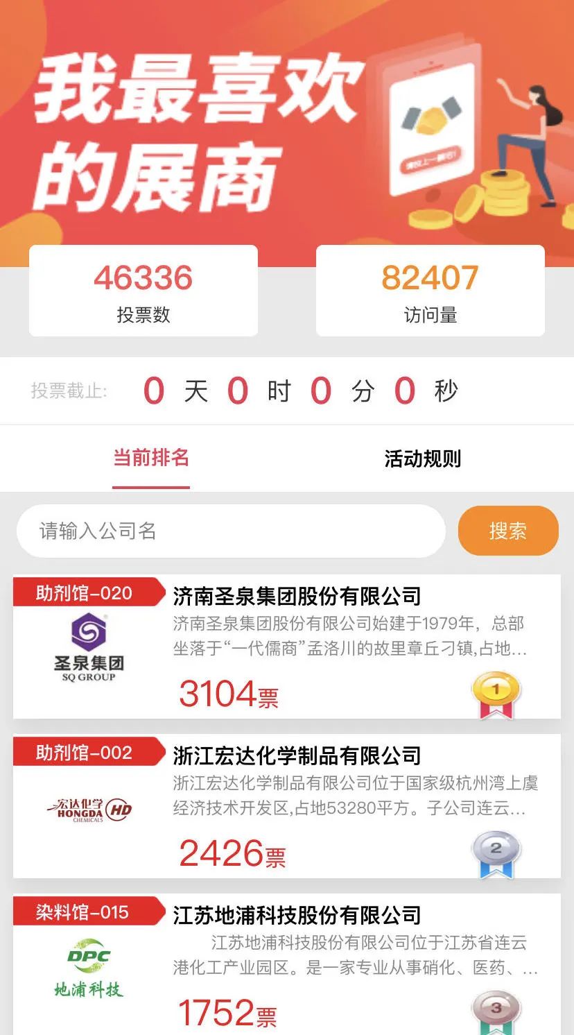 2023年6月7日~6月17日,七彩云第四届国际染料和助剂线上展销会举办了“我最喜欢的展商”评选活动”,活动十分热烈,小伙伴们疯狂拉票,为喜欢的展商打call。