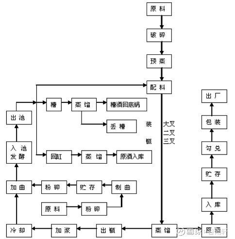看过《笨南北酿酒记》那篇文章的应该很好理解,大致流程大不多,其中大叉、二叉、三叉就是根据酒糟掺入不同比例的粮料。