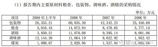 看到没,洋河的采购原材料,竟然包括调味酒,根据之后2009年年报披露的有给五粮液的5800万预付款,可知洋河的调味酒主要来源应该就是五粮液。