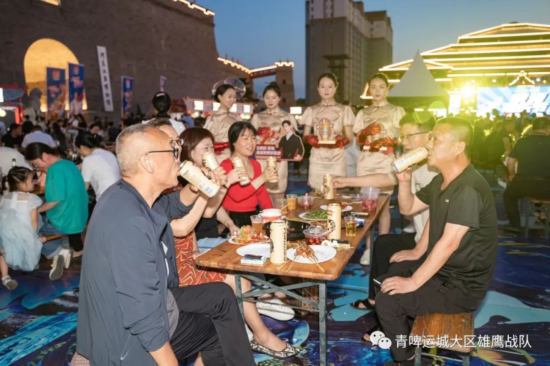 伴随着阵阵喧嚣声、浓浓的烟火气,在流光溢彩的夜色中,青岛啤酒百年国潮以“百年民族品牌”继续陪伴”百年老字号美食小店为主题,落地河东池盐博物馆,并联合山西特色美食小店,致敬下一个百年。喝青啤、品美食、赏夜景、看表演,满满的幸福感洋溢在每位消费者脸上……青啤产品、特色小吃琳琅满目,伴着烧烤、海鲜、花生、毛豆与啤酒的五味交织,文化元素、消费元素、场景元素相互映衬、相得益彰。