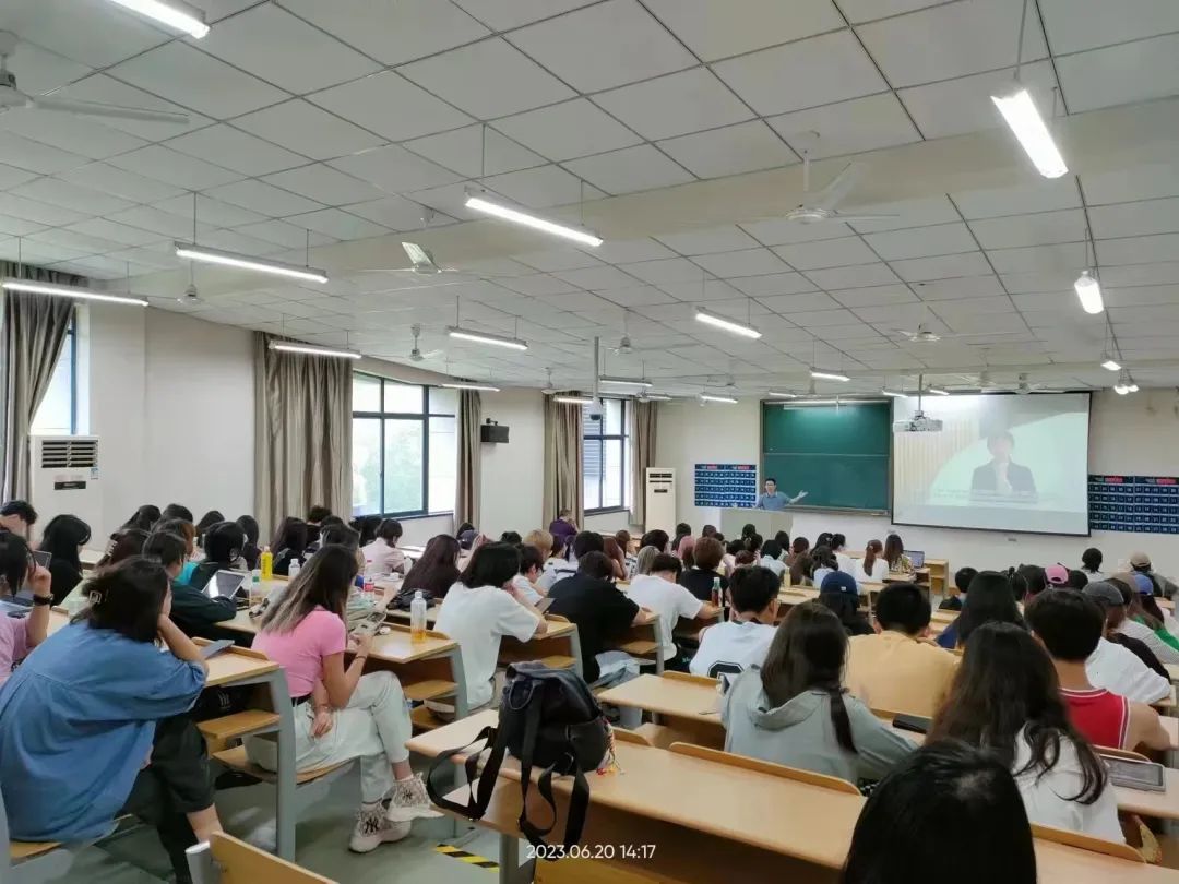 刘明广博士在讲座上全面介绍浙江省会展策划创意大赛基本情况,在此基础上向同学们分享了如何进行团队组织、高质量选题、赛道选择、创意展示和成果利用,并分享了历届优秀获奖作品。