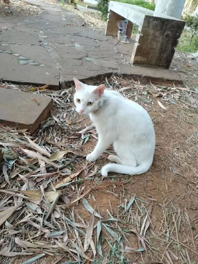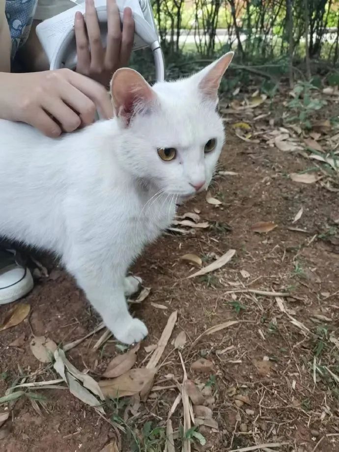 接近暑假,大学校园里的猫很多都会在长假后消失,而甜白酒是在五月末刚刚出现在教学区的小猫,脖子有伤,性格亲人,食欲旺盛,是一只非常有领养可能的健康小猫。经过救助平台的帮助,我们才发现小白脖子上的伤是因为耳螨自己挠出来的,比较容易治愈,并且我们一直误会了他的性别,小白是只绝育过的公猫!根据甜白酒的出现时间和性格等因素,他极有可能是毕业的学生遗弃的,也有可能是附近居民楼跑出来的家猫。这一次,我们希望能够为甜白酒重新找到一个家,不被抛弃,健康长大,依旧对食物心怀感恩,依旧用毛茸茸的小脑袋蹭他爱的人类。