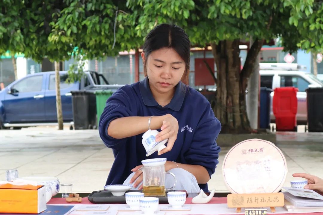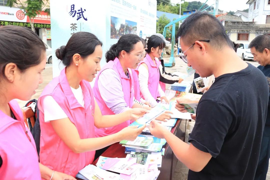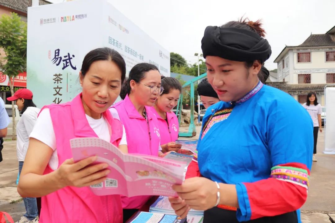 听法制宣传、看歌舞表演、品易武贡茶、赢精美奖品,现场一片欢乐的气氛。