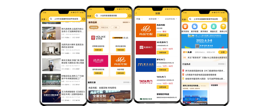 本届展会继续为客户提供“线下实体展台+线上实时联动”的双线展览模式。爱家帝是一款以社交方式获客的智能营销工具:分别有看店、看厂、看资讯、看展会、找加盟、找设计、文库、海报、制作文章、制作海报、制作宣传册、递名片、数据看板、私域圈、雷达、我的足迹、我的圈子和成员名片等功能模块。