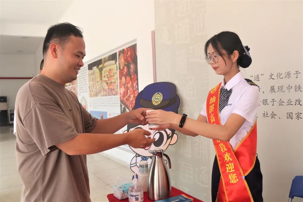 本次活动展销推广了潮汕八宝粽、金灶荔枝等20余种潮汕特色美食产品,各式各样的特产集体亮相。现场参展人员络绎不绝,展位前人头攒动,热闹非凡。汕湛公司也积极选派了青年志愿服务队全程驻点展销会现场,在服务区形成了一道亮丽的风景线,有的在服务站为司乘提供温水服务、发放宣传折页,有的在服务区路口引导展销会路线,有的在展位介绍本次展销产品,为广大司乘人员的旅途增添了一丝凉意。此次展销会在各单位的大力支持下取得圆满成功!进一步提高了服务区配套营销管理水平,提升了汕湛高速东段在当地的影响力,助推地方经济发展再上新台阶,为打造中铁高速品牌奠定了坚实的基础!