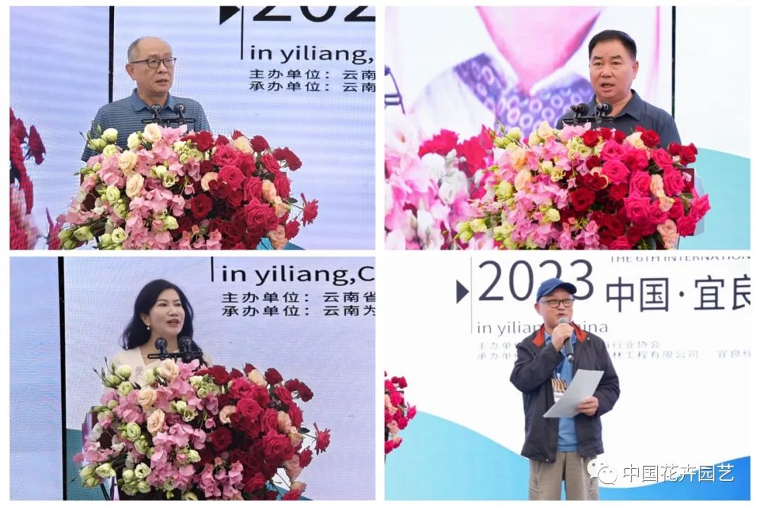 中国花卉协会绿化观赏苗木分会会长郑勇平,云南省三角梅行业协会会长、为君开董事长钱永康,云南省宜良县委常委王雪梅,浙江省金华市金东区长毛世梁在开幕式上致词。深圳市三角梅研究会执行会长夏志辉主持峰会。
