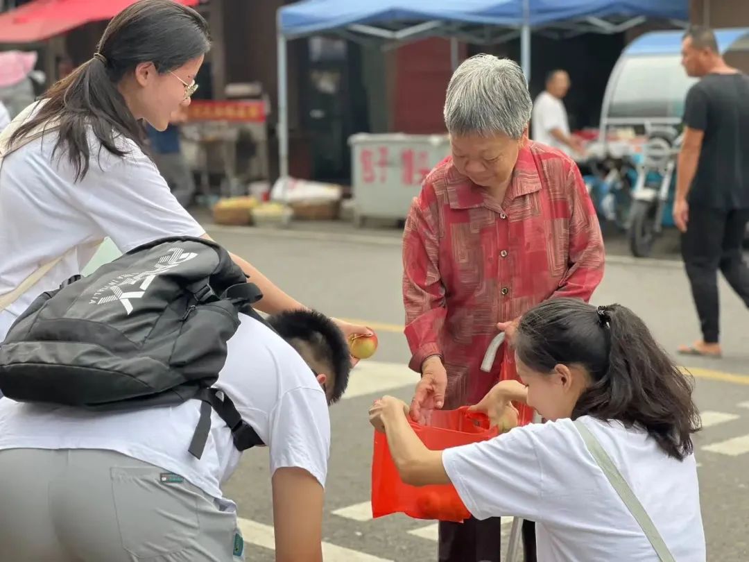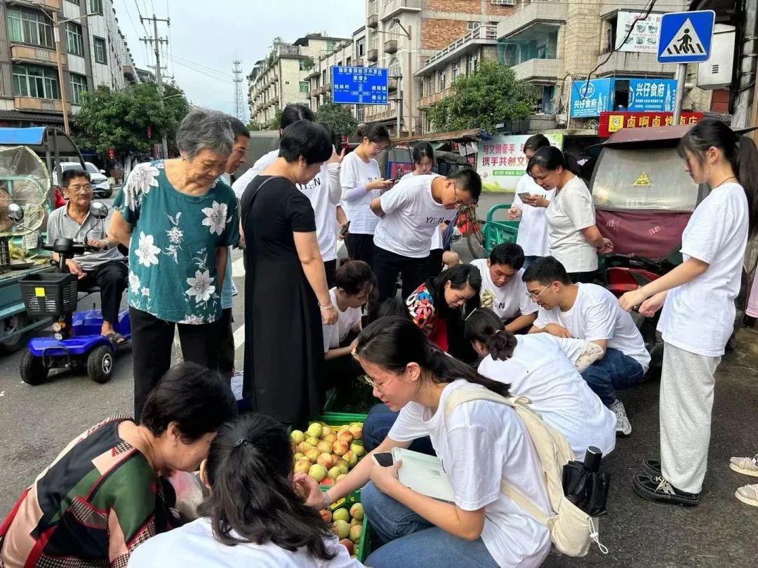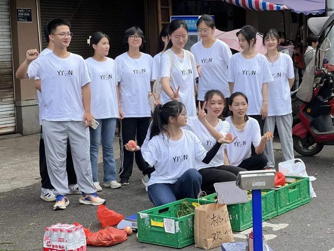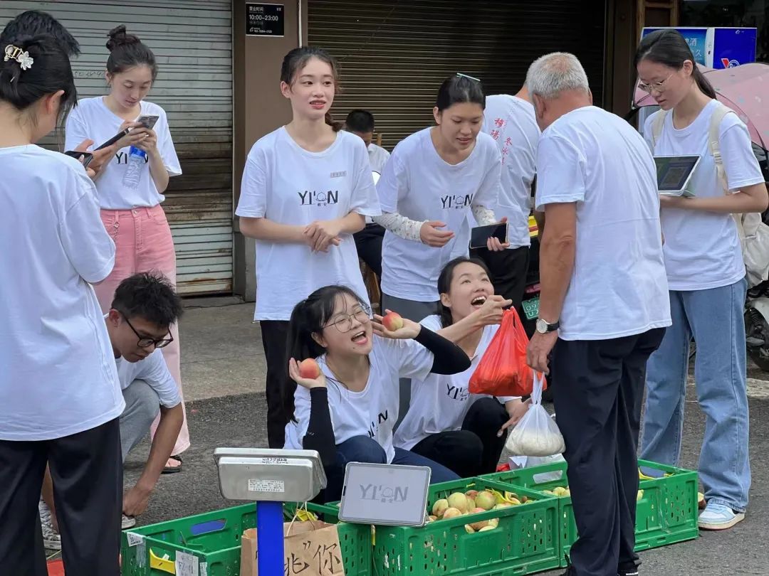 清晨6:30,穆阳的早市商贾云集、热闹非凡,实践队携一框框红透的桃子,在街头进行售卖。叫卖、揽客、介绍、打称,天边的鱼肚白伴随着一颗颗鲜红的桃子开启实践队员的劳动实践之路。实践队采用线上线下相结合的销售模式,其中线上观看总数2236人次,最终100斤桃子在一个半小时内成功售罄。